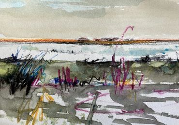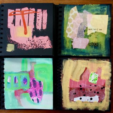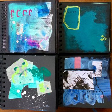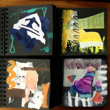 For more abstract studio sketches, I also use collage, texture medium, acrylic ink and acrylic gouache.